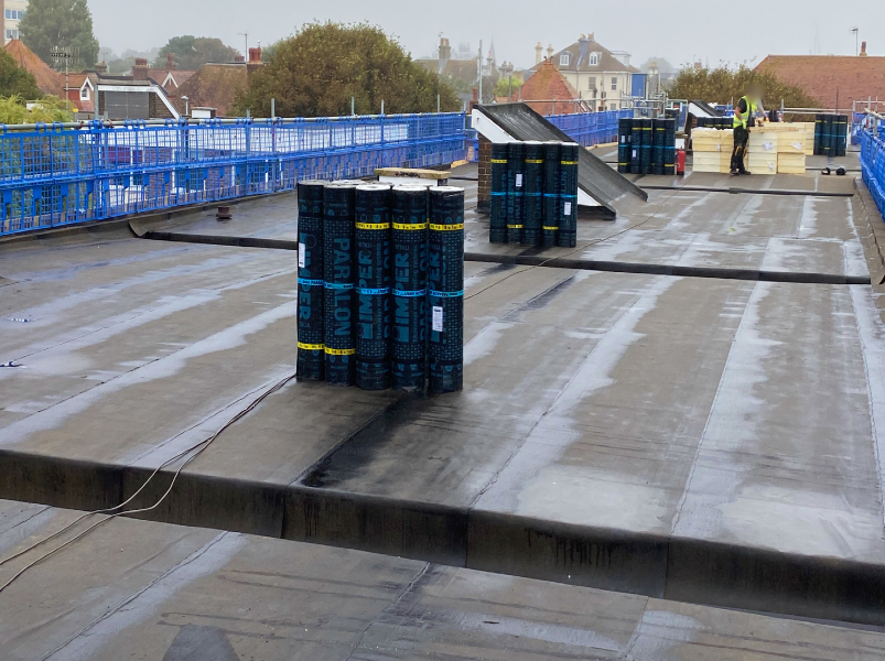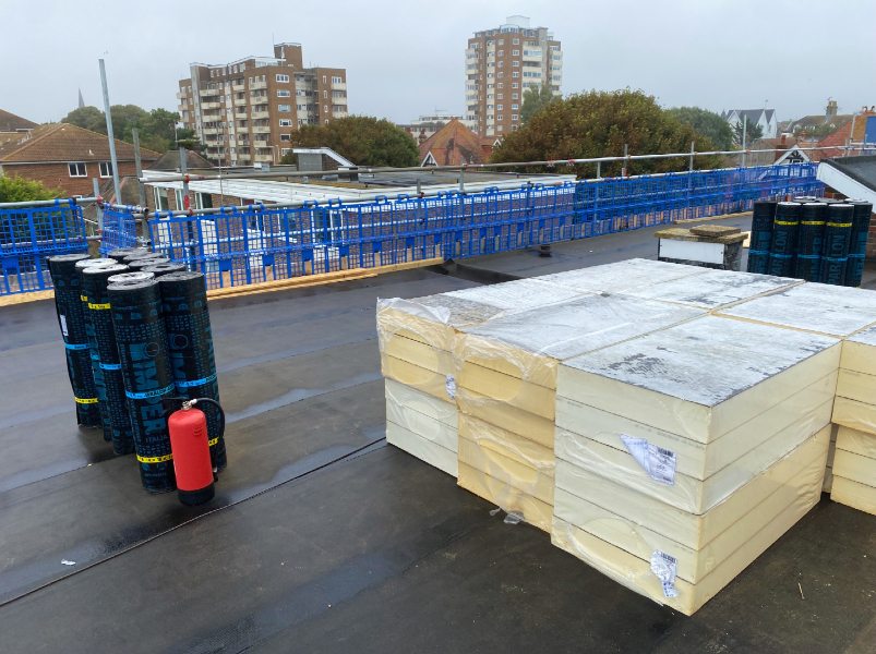 Sheldon Court in Worthing has recently had its flat roof fully refurbished by Weatherproofing Advisors in partnership with MOY Group. The original mineral felt roof, laid over timber decking, had suffered years of wear from coastal weather conditions and was no longer performing acceptably. In an end-of-life state, it failed to meet current building insulation regulations. With elderly residents calling the building home, keeping disruption to a minimum and maintaining clear communication was a key priority throughout the project.